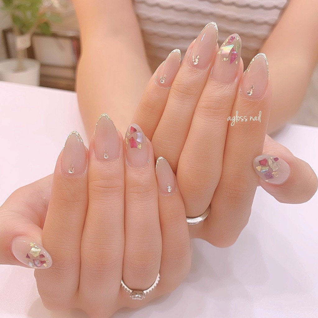 Plume Nail Vカットストーン クリスタル スワロフスキー ベージュネイル パールネイル ワンカラーネイル ワンカラー ストーンネイル キラキラネイル オフィスネイル シンプルネイル ネイルデザイン ネイル ショートネイル 冬ネイル 冬デザイン 三条